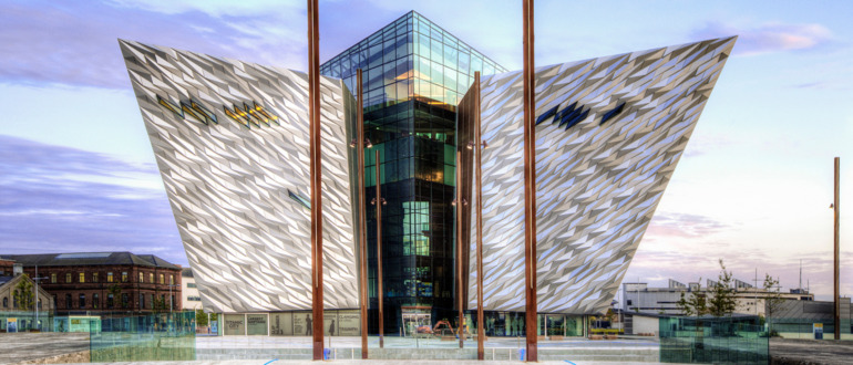Sam budynek, który znajduje się na pochylniach, na których zbudowano Titanica, został zaprojektowany tak, aby odzwierciedlać historię budowy statków w Belfaście i szczyci się unikalną kanciastą konstrukcją przypominającą kształt dziobu statków. Sam budynek, który znajduje się na pochylniach, na których zbudowano Titanica, został zaprojektowany tak, aby odzwierciedlać historię przemysłu stoczniowego Belfastu i szczyci się unikalną kanciastą konstrukcją przypominającą kształt dziobu statków.