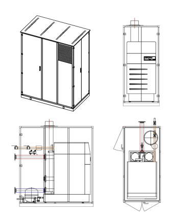 Cabin Slim Thermal Energy System do zastosowań zewnętrznych składa się ze wszystkich elementów koniecznych do wytwarzania ciepła oraz okablowania fabrycznego, gotowych do użytku i zamontowanych już w przygotowanej modułowej konstrukcji, maksymalnie zabezpieczonej przed wpływem czynników zewnętrznych takich jak deszcz, śnieg czy lód.