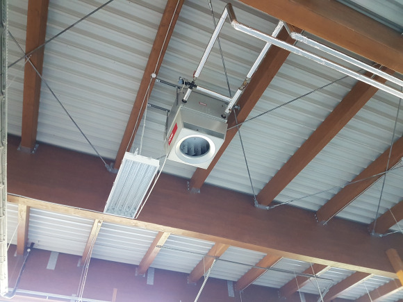 Inside, on the ceiling of the Pannonia Centre of Excellence for Wood, two TopVent recirculating air units are mounted.