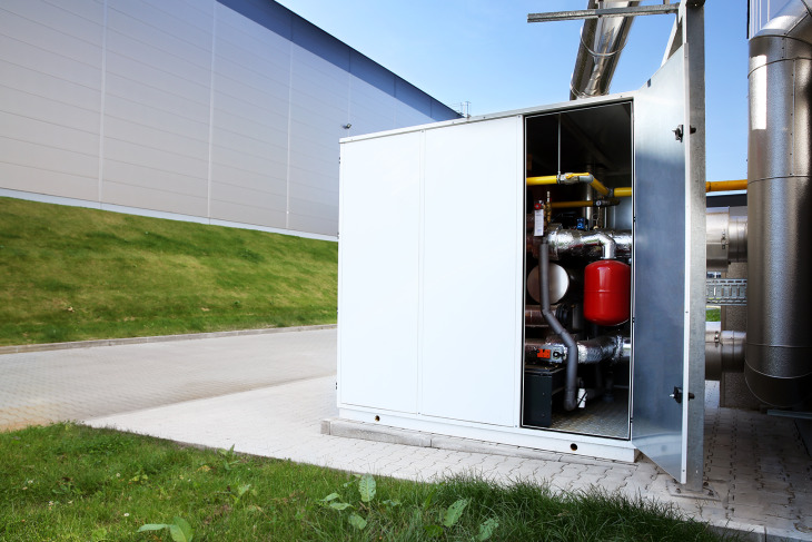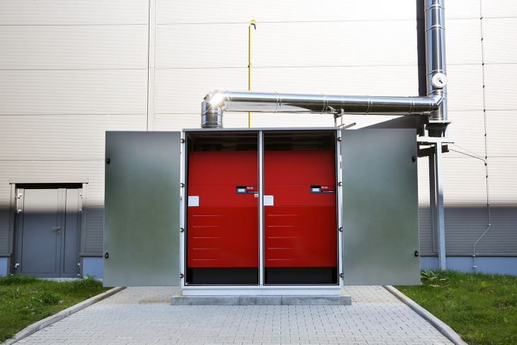 Zewnętrzny moduł energii grzewczej Hoval został usytuowany obok budynku i kryje w sobie dwa gazowe kotły kondensacyjne UltraGas o łącznej mocy 800 kW. Dzięki systemowej regulacji TopTronic E możliwa jest ciągła regulacja mocy obu kotłów, proste ustawianie czasu pracy oraz uzyskanie pełnego wglądu w informacje eksploatacyjne.